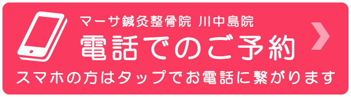 まずはお気軽にWEB、お電話、LINEからご予約ください。お電話の際には「マーサ鍼灸整骨院 川中島院です。」とスタッフが電話に出ますので、「ホームページから予約したいのですが」とお伝えください。