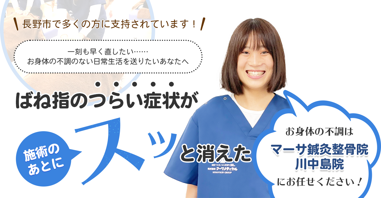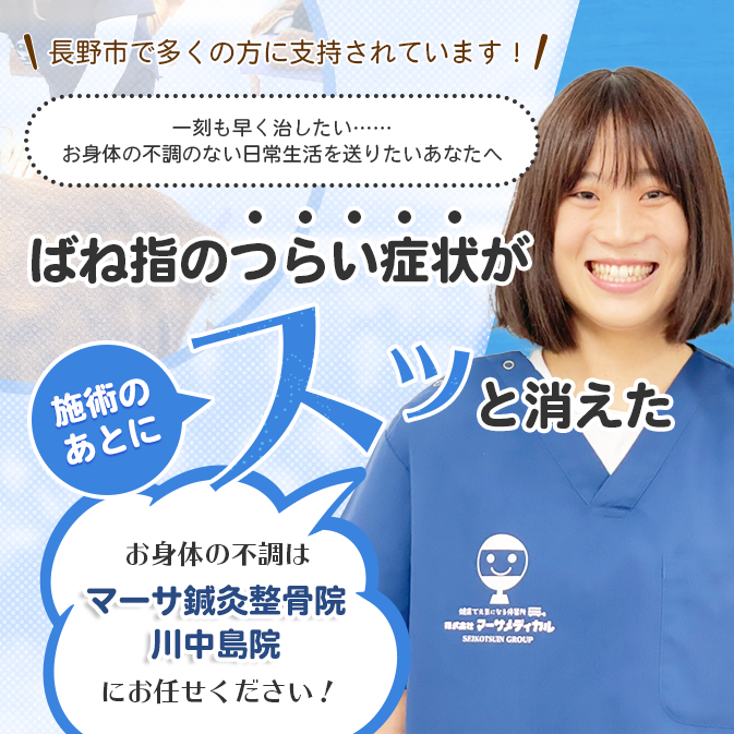 ばね指でお悩みの方はマーサ鍼灸整骨院 川中島院へご相談ください。